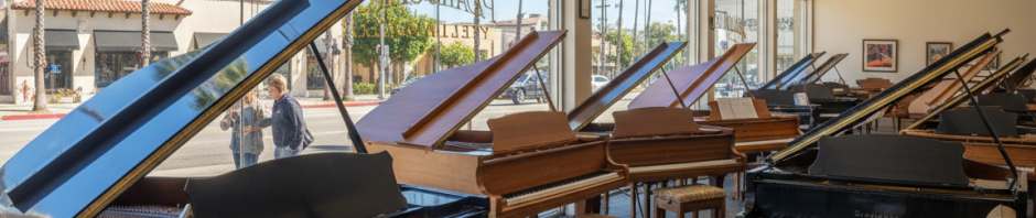 Los Angeles showrooms can display everything from immaculate Steinway baby grands to Hamburg concert instruments with distinctive veneers. Sometimes, liquidation and closing sales offer Steinway Model B and Model S pianos at attractive prices. Occasionally, consignments bring Mason & Hamlin living-room grands and Schimmel or Petrof concert grands to the market as curated bargains.